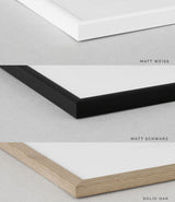 Auf Wunsch rahmen wir Deinen Print vor dem Versand ein. Es stehen fünf Rahmen zur Auswahl.