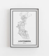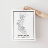 Städtekarte von Berlin Lichtenberg als wunderschöne Illustration, gedruckt auf hochwertigem Premium-Papier. Verfügbar in verschiedenen Größen.