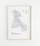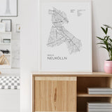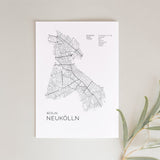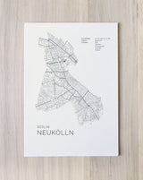 Städtekarte von Berlin Neukölln als wunderschöne Illustration, gedruckt auf hochwertigem Premium-Papier. Verfügbar in verschiedenen Größen.