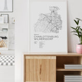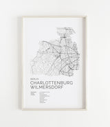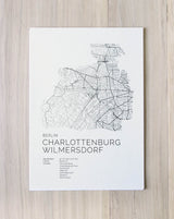 Städtekarte von Berlin Charlottenburg Wilmersdorf als wunderschöne Illustration, gedruckt auf hochwertigem Premium-Papier. Verfügbar in verschiedenen Größen.