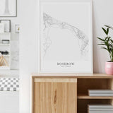 Städtekarte von Koserow als wunderschöne Illustration, gedruckt auf hochwertigem Premium-Papier. Verfügbar in verschiedenen Größen.